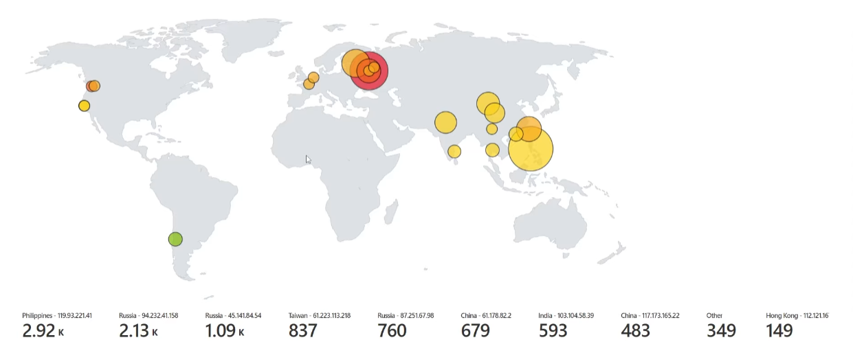 WORLD MAP OF INCOMING ATTACKS AFTER 24 HOURS